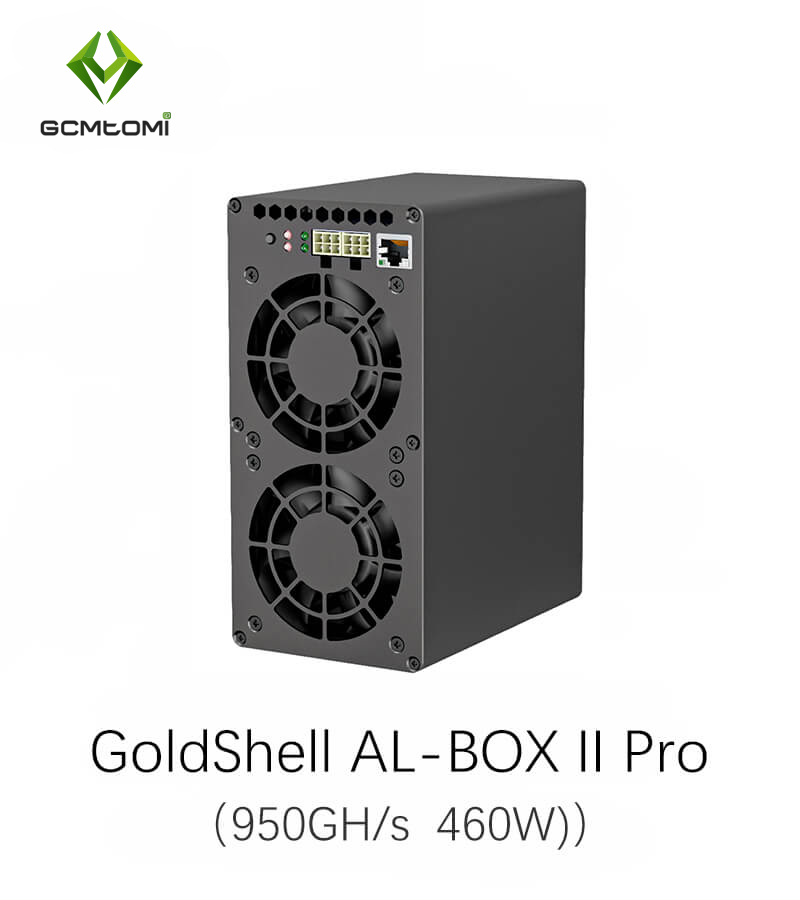 The Goldshell AL BOX II PRO mines the Blake3 algorithm with a maximum hashrate of 950Gh/s and a power consumption of just 460W.